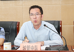 锦溪镇城管中队队长李新就强村公司所辖区域(工业区、第一邻里中心、万丰邻里中心)布暑违章拆违工作;